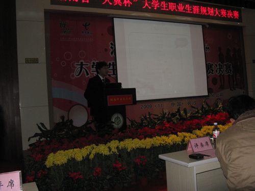 11月19日,湖南省大学生职业生涯规划设计大赛决赛在湖南中医药大学含浦校区举行。 本此大赛由湖南省教育厅主办,湖南中医药大学协办,中国电信湖南分公司全程赞助。决赛选手分为“职业分为生涯规划组”和“创业组”。决赛分两个阶段进行,一是选手作品展示。各位选手现场介绍自己的作品,限时5分钟,其中个人陈述环节3分钟,评委提问环节2分钟,由评委根据《现场展示评分细则》进行现场打分。二是企业面试。由评委根据事先拟好的面试题对选手们进行面试,评委根据《面试评分细则》进行现场打分。