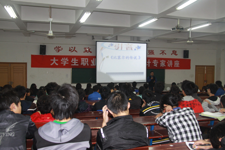 讲座中余教授首先从《比赛尔的传说》开始,引出了职业生涯规划的重要性,告诫大家“新生活从选定方向开始”。然后,就自我分析、家庭情况、学校生活、职业分析和短期中期目标、大学三年目标、毕业后目标等因素的分析对学生进行了职业规划的科学指导。讲座理论联系实际、语言生动幽默、深入浅出、引人入胜,博得了学生们的阵阵掌声。(贺山青 许恒 李珍 李晨)