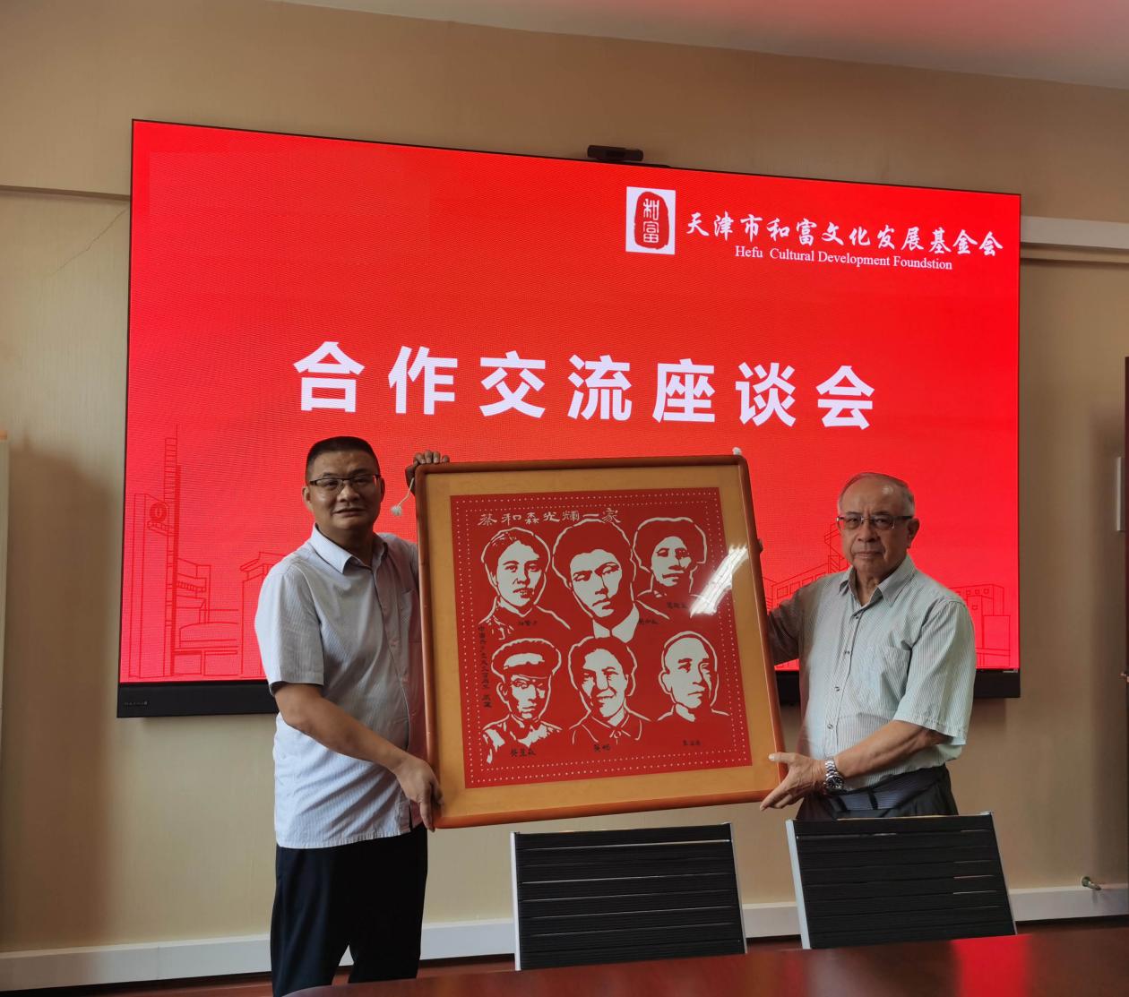 在会上,李勇同志表达了感谢之情,表示将珍重此幅作品,将作品张挂于天津市和富文化发展基金会会议室,今后将在红色资源利用上加强与家乡高校的合作。