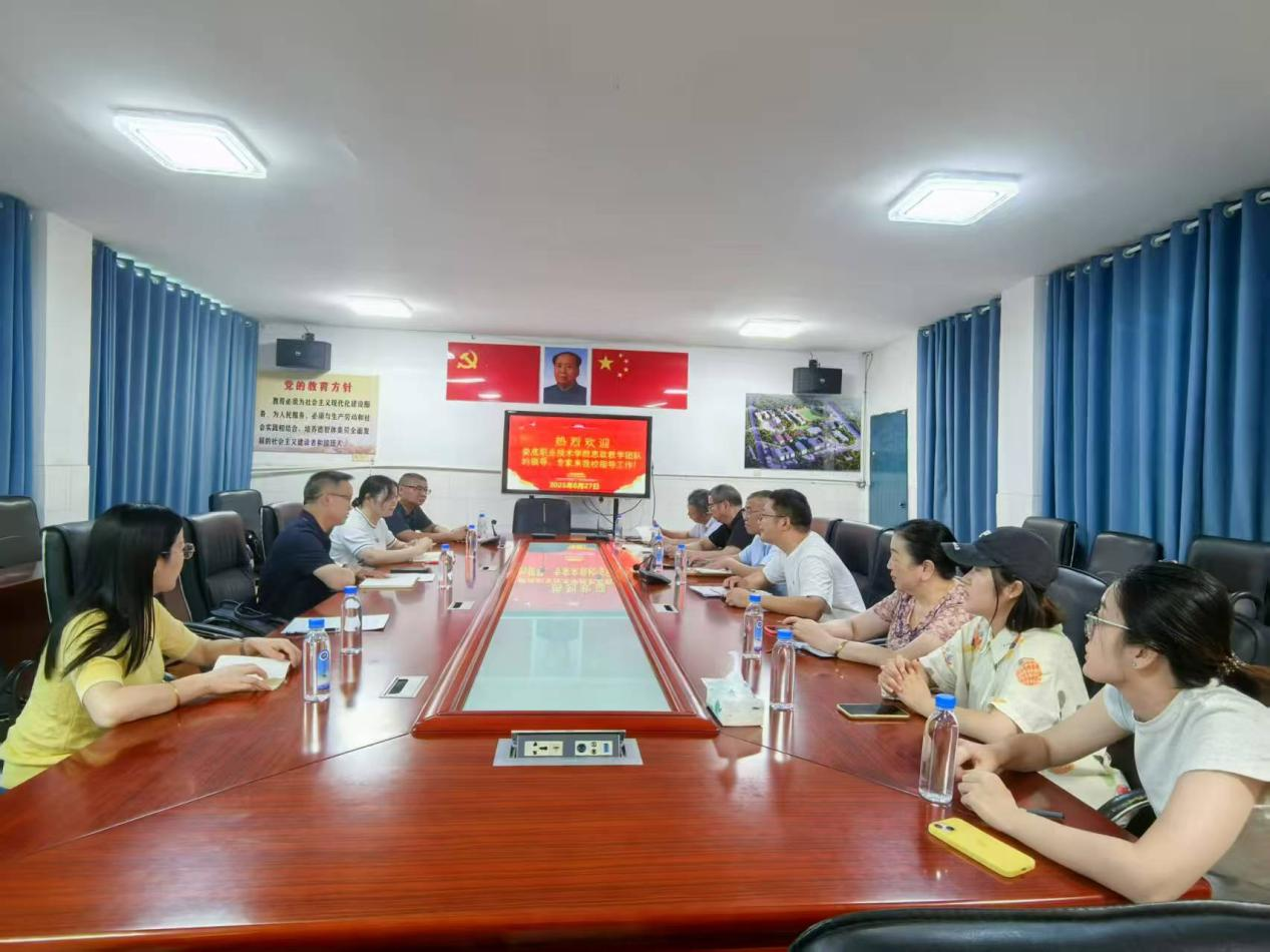 为深化中高职思政教育协同创新,探索中高职思政课程衔接的有效路径,6月27日下午,娄底职业技术学院思政课部主任周旺东率思政课教师团队赴湖南涟源工贸中等专业学校,开展“中职-高职思政课教学衔接与学情分析”专题调研。涟源工贸中专党总支副书记、副校长刘魁、教务处主任肖伟、副主任颜国强、财经商贸部部长谢振兴等对调研组的到来表示了欢迎。