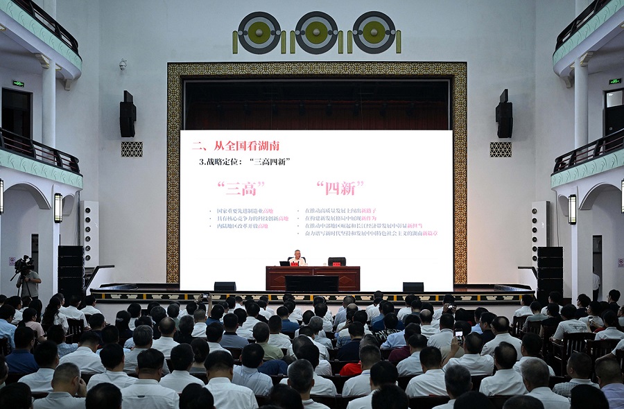 毛伟明省长在授课时说,要深入贯彻落实习近平总书记关于思政课建设的重要论述,立足湖南省情,紧扣“三高四新”美好蓝图讲好思政课,做到“三个必须”,即必须有爱党爱国的坚定立场、感人育人的精神力量、可见可信的鲜活素材;做到“三个结合”,即结合战略定位、描绘湖南发展前景之“广”,结合发展成就、展示湖南发展面貌之“新”,结合文化传承、解码湖南发展动力之“源”;做到“五个讲出来”,即讲出实现“三高四新”美好蓝图的使命担当、高质量发展的自信自豪、改革开放的时代强音与壮志豪情、湖湘文化的精神归属和三湘四水的和美民生新貌。勉励思政课教师要当信仰坚定的“大先生”、时代精神的“宣讲员”、以德立身的“示范者”和点亮未来的“筑梦人”,引导广大学生投身奋力谱写中国式现代化湖南篇章的伟大实践。