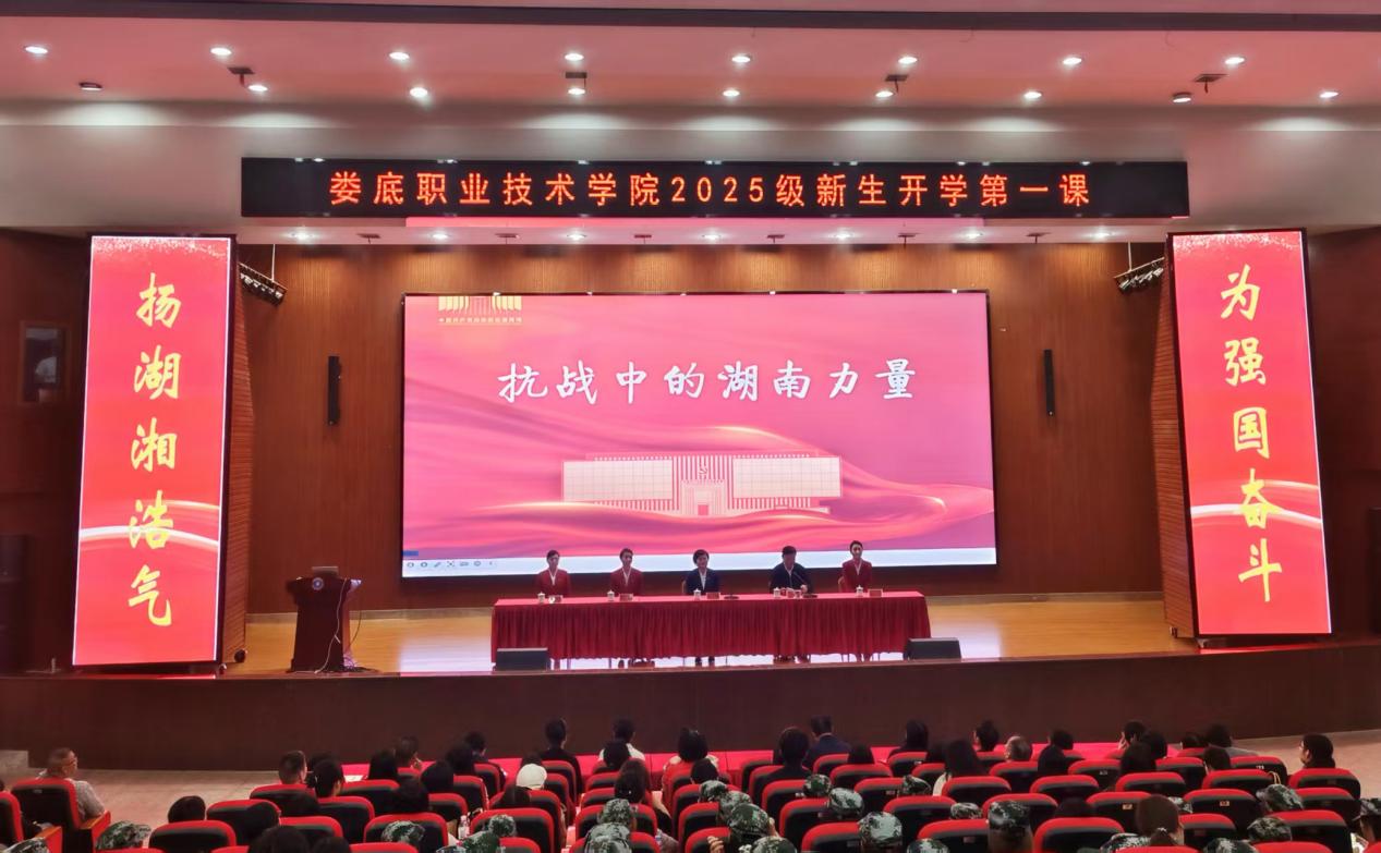 9月25日,我校2025级新生开学第一课在学术报告厅开课。本次活动以“抗战中的湖南力量”为主题,特别邀请中国共产党湖南历史展览馆专家团队主讲。学校党委委员、副校长龙国锋出席活动,全体思政课教师、新生辅导员及新生代表共同聆听开学第一课。