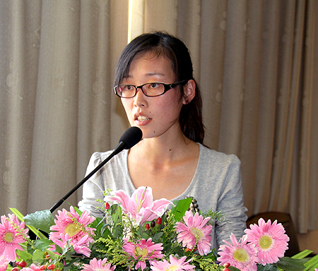 往届校园创业大赛获奖学生代表上台分享体会
