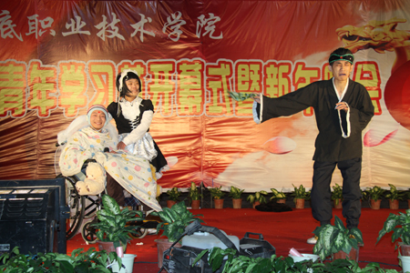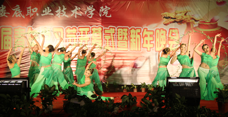 回眸2011,娄职学子用青春点燃希望火把;畅想2012,娄职学子用活力谱写明日诗篇。12月08日晚,我院在文化广场隆重举行第七届青年学习节开幕式暨新年晚会。院长杜祥培、党委副书记欧友佳、副院长刘自斌以及各处室系部负责人、教师代表、学生代表约7000余人观看了演出。 杜祥培致开幕词。他代表学院党委、行政对全院青年学子表示亲切的问候。他指出,青年学习节是青年学子展示自我的舞台,锤炼本领的前台,提升素质的平台,更是交流知识和增进友谊的窗口。他向我院青年学子提出了四点希望与要求:希望大家确立目标,励志前行;严于律己,养德修身;扎实学习,提升素质;以校为家,团结奋进。 欧友佳隆重宣布第七届青年学习节正式开幕。 开幕式晚会历时一个半小时,汇集了各系精心编排选送的12个精彩节目。《摆夷婧葩》、《康定溜溜》、《耀斑》、《春风又绿》等大型舞蹈以其优美的舞姿,各具特色的造型,将观众带入了艺术的氛围之中;吉他弹唱《倔强》、歌曲《红旗飘飘》让观众久久陶醉在了悠扬的歌声里;小品《爱你没商量》、《看病风波》幽默诙谐,充分体现了我院学子的无限创意, 精彩的节目让观众感受到了学院浓厚的文化底蕴。晚会现场气氛热烈,火树银花,莺歌燕舞,将夜晚的娄底职业技术学院渲染成了一片流光溢彩,欢乐和谐的海洋。经过评选,电信系选送的小品《爱你没商量》获曲艺类第一名,财贸系选送的舞蹈《春风又绿》获歌舞类第一名。 晚会结束,院团委书记欧芳发表激情洋溢的讲话。她在讲话中强调两个词“感谢”“感动”。首先她感谢演职人员、感谢在场观众,是他们的努力与坚持才有整场晚会的圆满举办;其次是感动,许多演员放弃了休息,有的还带病坚持排练,他们精湛而精彩的演出是本次活动获得成功的重要保证。 第七届青年学习节的活动时间为11月18日至12月25日,活动包括青年学习节开幕式暨新年晚会、励志规划、就业创业、综合素质、专业技能、青年榜样、咨询与服务、颁奖总结等九大类25项活动。(许恒 刘艳)