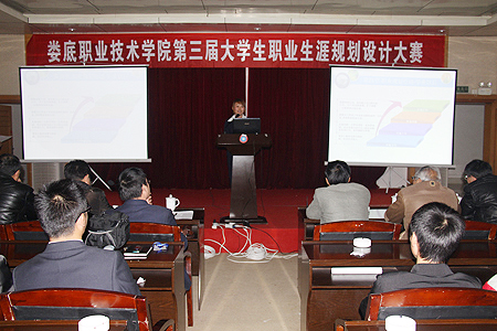 为提高我院学子职业生涯规划意识,掌握职业生涯规划知识,帮助学生树立正确的人生目标,增强学生的就业竞争力。12月9日,由思政课部主办,教务处、学工团委、招就处、宣传部协办的娄底职院第三届大学生职业生涯规划大赛决赛在主教学楼多功能报告厅隆重举行。来自各系部的15名参赛选手参加了比赛。