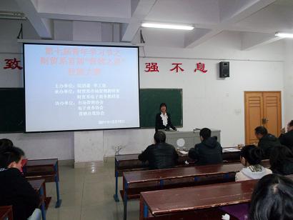 为了提高学生学习营销知识的积极性,提升学生的专业技能。12月15日晚,由院团委、学工处主办,财贸系市场营销教研室、财贸系电子商务教研室承办,市场营销协会、电子商务协会以及营销自我协会协办的娄底职业技术学院首届“营销之星”职业技能大赛在我院主教楼110教室隆重举行。教务处张一平处长,湖南人文科技学院唐赞教授,财贸系主任朱岳坤,市场营销专业刘卫国老师,卢特奇老师,吴梦华老师莅临本次比赛并担任评委。