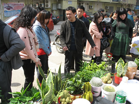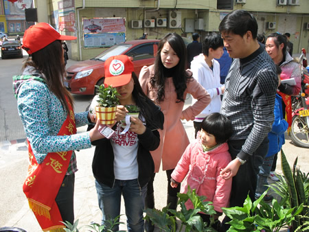 阳光渐热,参与者不断。一个个居民拿着各自家里的瓶子废纸来兑换植物,还笑脸盈盈的说:“这些放在家里也是放卖不了几个钱,还不如来换盆植物放在家里也可以美化一下。”“原先我们想买些花草可是又要走好远而且还养不活,况且家里的垃圾废纸箱之类的东西都堆满了车库,甚是麻烦,也占空间。现在你们来做这样一个活动刚好解决了我们的问题和麻烦,值得提倡。”活动中,居民们询问了许多的诸如“为什么以前我买的某某植物都死了?”“这个要怎么养才能活?”此类的问题。都得到了园林专业志愿者们耐心而专业的回答。这样一来,参与的居民更多了。