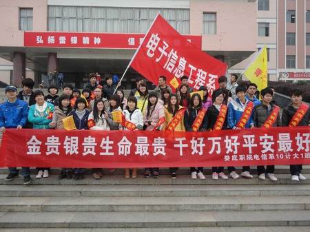 通过此次的活动,同学们对交警的工作多了一份理解与支持,也提高了同学们的交通安全意识。更提醒他人珍爱生命,让交通安全意识深入人心。同学们的雷锋行动奏响了一支文明交通使者的交响乐。(电信系)