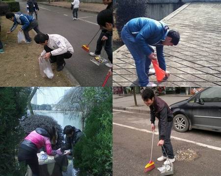 10网大和10通信班的志愿者们5到6人为一小组,把石马公园分为几个区域,一起分工完成好白色垃圾清扫的任务;10电大1班志愿者不怕苦、不怕累、不怕脏,把沿路街道打扫的干干净净,他们用自己的热心和行动表明对雷锋精神的坚持,也把他们的热心带给了在公园里休闲和在街上过往的人们。(电信系)