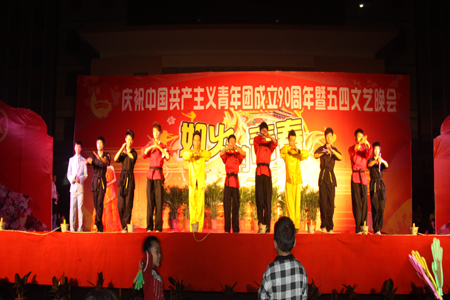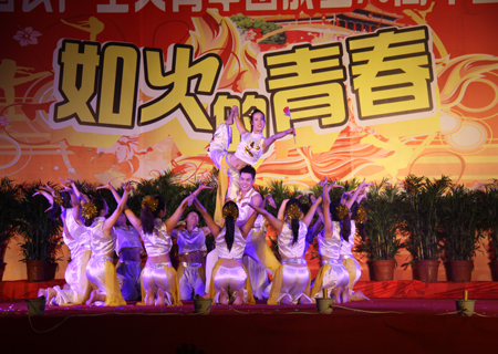 伴随着财经贸易系的开场舞《如火的青春》,晚会正式开始。表演过程中,一支支姿态优美、意蕴无穷的舞蹈让人陶醉,一首首喜庆欢快的歌曲悦耳动听,笛子独奏意境优美,小品风趣搞笑,音乐快板说唱俱佳,武术表演技艺精湛,配乐诗朗诵让人领略五四精神的强大感召力。整场晚会节目精彩不断,台上演员尽情绽放青春的神采,台下观众叫好连连,掌声、呐喊声响彻娄职每一个角落,如火的青春在这里飞扬,辉煌的人生从这里起航。