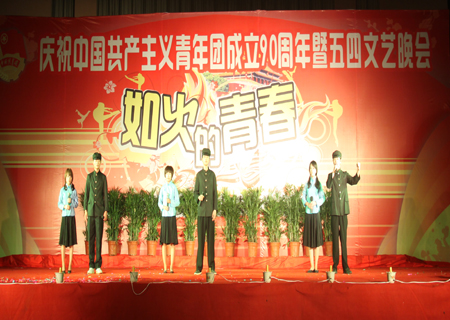5月4日晚,我院庆祝中国共青团成立90周年暨五四文艺晚会在学院文化广场举行。全体在家院领导以及团委、学工工作人员,各系党总支书记、学工主任、辅导员出席晚会现场,全院在校学子一起观看了晚会。