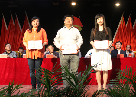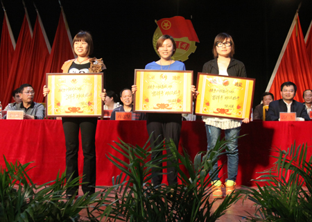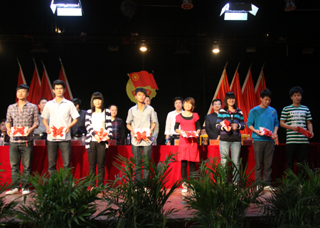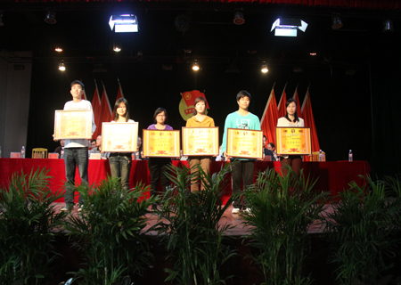 在热烈的掌声中,院领导们为我院2011年度优秀团员、优秀团干,2012年辅导员技能竞赛获奖人员,第三届“自强之星”获得者,2011年度学生工作先进个人、班级、系部,“雷锋号”先进个人、班级、系部,2011年度“娄底职院五四红旗团支部”,“娄底职院五四红旗团总支 ”分别颁奖。