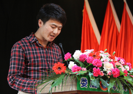 青年教师代表、“娄底市第五届十大杰出青年”提名奖获得者曾玉华老师发言。他就如何将“五四”精神融入到工作生活中谈了三点想法:作为一名青年,要多些学习、少些享乐;多些实干,少些浮躁;多些奉献,少些索取。“雷锋号”先进个人获得者东知才让和“自强之星”获得者孙兆一也在会上相继发言。