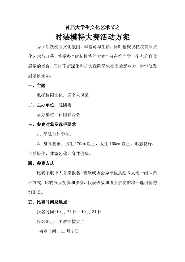 时装模特大赛活动方案