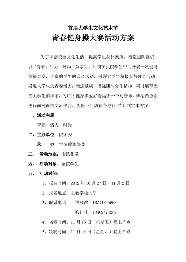 青春健身操大赛活动方案