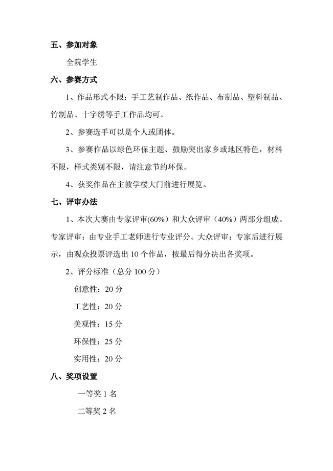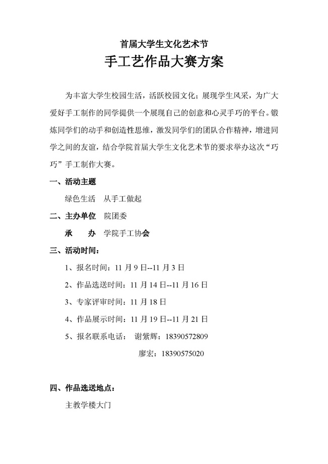 手工艺作品大赛方案