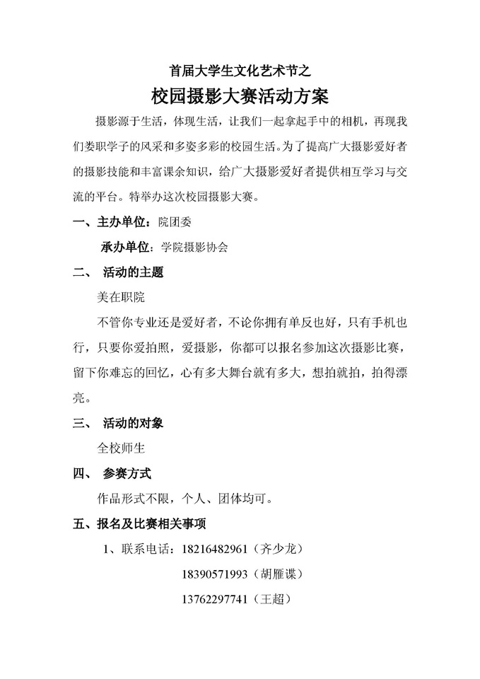 校园摄影大赛活动方案