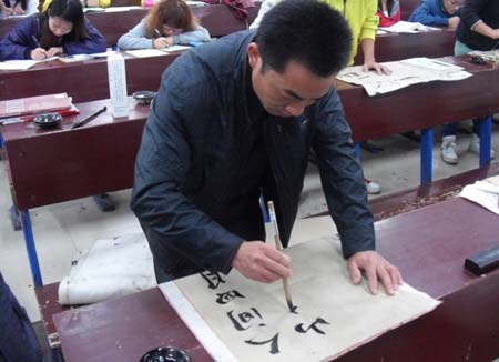 在规定的时间内,书法组的选手们以行云流水之势创作了一批优美的书法作品,美术组的同学用他们得心应手的画笔 描绘了一幅又一幅栩栩如生的作品  。大赛评委书法协会指导老师罗华斌、会长戴进程、协会教导部部长杨祖谦也亲临比赛现场。此次比赛不仅使广大观众对书法与绘画有了进一步的深刻了解与体会,也使我院校园文化生活品位得到进一步提升。(院团委)