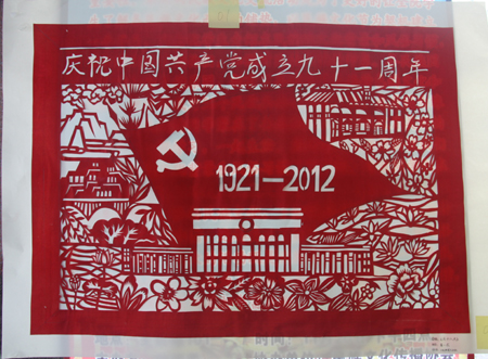此次评审的方式分为大众评审和专家评审,参赛作品在主教学楼门前进行展览。本次比赛参展的作品形式多样取材广泛,其中包括插花、剪纸、折纸、十字绣以及环保意义十足的手工编织袋,展览现场吸引力不少同学的驻足观看。其中,剪纸《庆祝中国共产党成立九十一周年》让现场同学啧啧称赞。