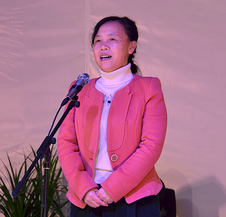 院党委书记李文莲在晚会上致辞。她对出席晚会的各位领导及全院师生代表表示了最热烈的欢迎和节日的祝福。李文莲指出,娄底职院从无到有、从小到大,明年即将通过国家骨干校验收,正式成为国家高职院校的骨干单位,这一切归功于学院全体教职员工艰苦的创业和辛苦的贡献,归功于市委市政府的正确领导与英明决策,归功于社会各界领导和朋友们的大力支持。“娄底职院就是一个温暖的大家庭。”李文莲动情地表示,不论是普通职员还是高官高管,不论来自何方去向何处,我们都是中华民族的子孙儿女,我们都是一家人。今夜各民族学生欢聚一堂,以特有的方式表达对娄底职院的无限热爱、表达对各位领导的衷心感谢、表达对祖国的讴歌赞美,真正体现了民族一家亲的深刻内涵。最后,李文莲衷心祝愿晚会圆满成功,祝福领导、朋友、全院师生健康快乐、吉祥幸福。