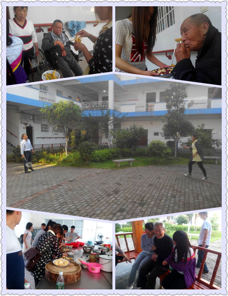 当天下午2点30分,全体协会会员来到娄底社会福利院福星公寓,给老人送上最衷心的祝福,以及本次活动准备的一些水果、蛋糕等小礼品。随后融入到老人中,协会会员们纷纷积极地表现出自己的爱心,有的把礼品一一送到老人手里、有的给老人打扫卫生,整理床铺、有的给老人表演节目、有的与老人谈心,聆听老人当年的故事……其中一位年近90岁的老人同我们诉说当年革命的实际,每当他说道某位革命英雄时是都热泪盈眶,同时也让协会会员们深深的感触到了中国那些老人的伟大。在于老人们有说有笑的各种交流互动中,我们圆满的结束了此次的活动。