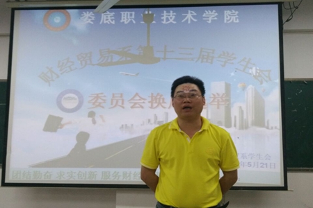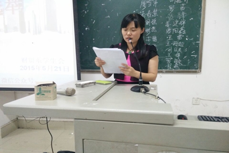 5月21日晚,财贸系团总支、学生会干部竞选大会在教学楼410举办,财贸系系主任王威然、党总支书记蒋美群、学工主任阳娟、学工干事谭鹏飞、姚凌虎参加了此次干部竞选。竞选大会由学生会主席陈甜果主持。