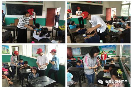 准备工作就绪后,会计学院学工副院长禹云带领由6名成员组成的社会实践小组,一个班接着一个班的进入教室发放文具。走进教室,社会实践小组组长邓勃耐心的给孩子们解释活动内容和意义,并有序为孩子们发放相应年级需要的文具,在改善他们的学习条件方面献出力量。