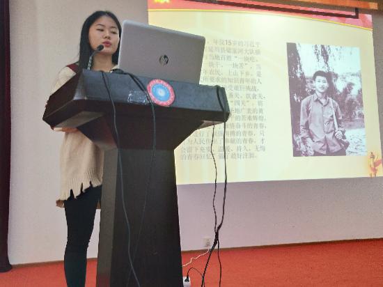 2017年10月19日下午在娄底职业技术学院,主教楼211多功能报告厅217,由刘媛书记主持,十个学院学生代表讲解了《习近平的七年青春岁月》