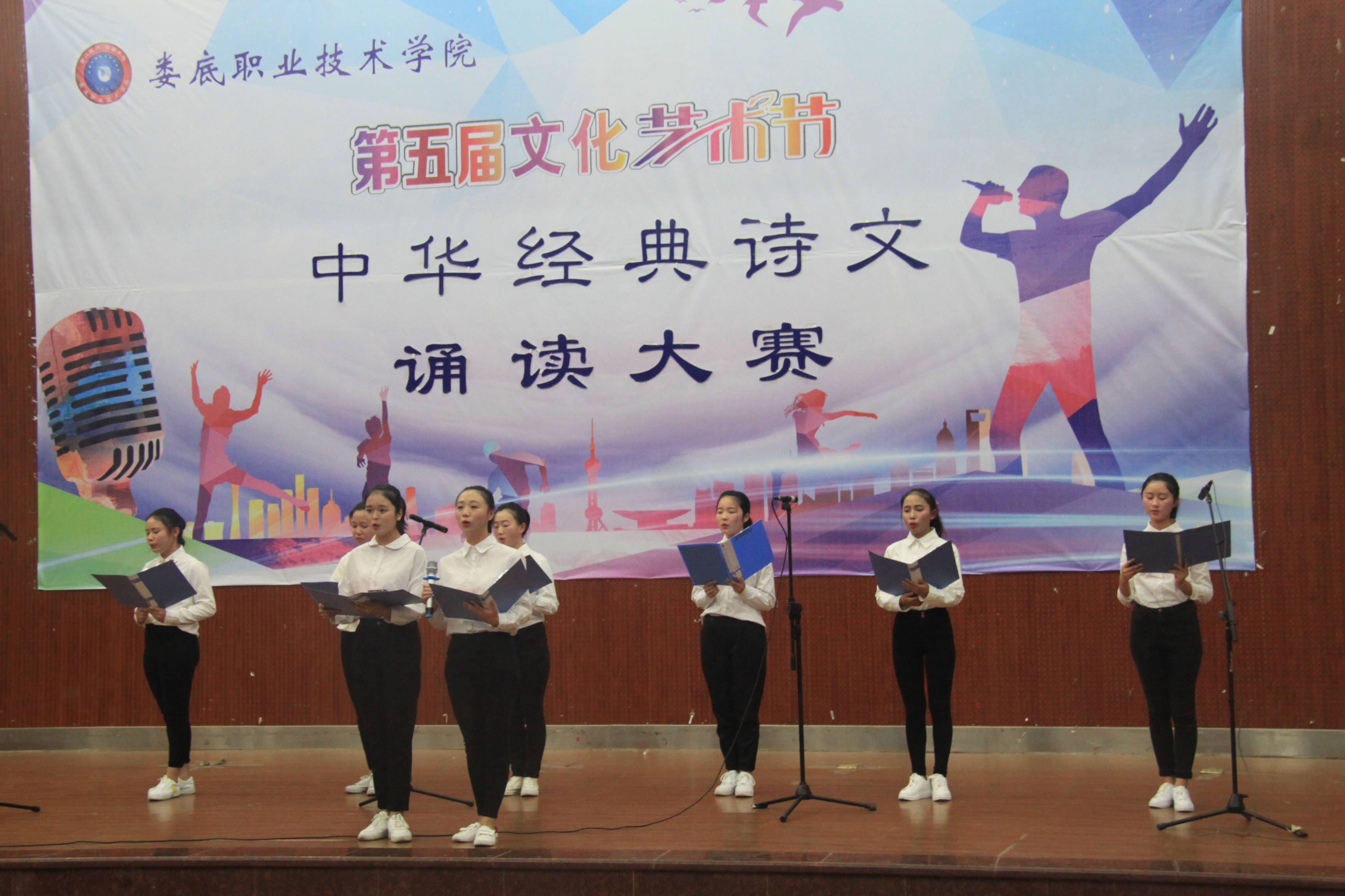 为营造书香校园、文明校园。11月22日晚上7点,在娄底职业技术学院新培训楼礼堂,我们隆重的举行了第五届文化艺术节中华经典诗文诵读大赛。出席本次大赛的评委及老师分别是:校团委书记刘媛,艺术团团长刘轶中,宣传部副处长朱燕,公共部教授徐续红。