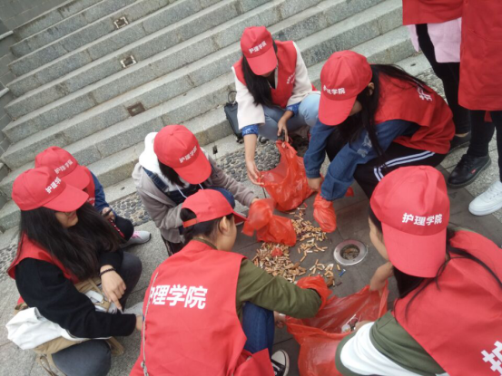 图为学员清理街道烟蒂活动
