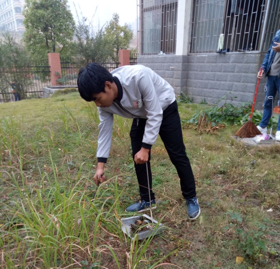 图为学员在校内开展保洁活动
