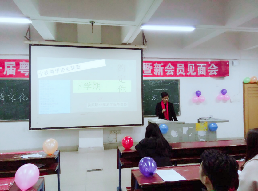 首先,粤语文化协会第一届会长陈林强宣布了:“娄底职业技术学院粤语文化协会第一届动员大会”正式开始,迎来全场热烈的掌声和欢乐的笑声表示祝贺。
