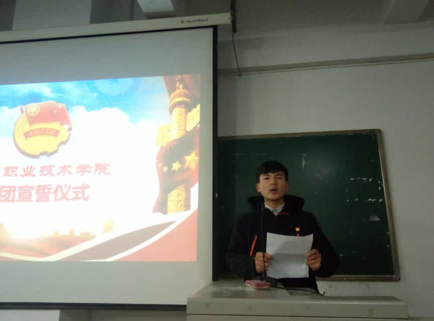 光辉的火炬,唤起了民族的觉醒。壮丽的事业,激励着我们继往开来。2018年1月04日在娄底职业技术学院主教楼110和主教楼210教室隆重举行新团员入团宣誓仪式。会议由团委学生副书记王子豪和赵国华主持,出席本次入团仪式的老师有校团委副书记游骏、校团委指导老师李明、各二级学院团总支书记及各二级学院团总支学生副书记。