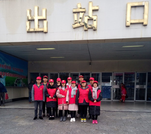 在志愿服务中,志愿者主要是服务旅客进站候车,包括验票口检票、候车厅引导、站点咨询等便民利民活动。验票口的志愿者不仅要做好票、证、人三项信息的审核工作,还要对不符合规定的旅客做好解释工作,虽说辛苦,但大家做得一点也不含糊。在候车厅,随时可以看到志愿者们忙碌的身影,他们热情地引导旅客快速进入候车区、为旅客提供站点咨询、帮助旅馆提行李。“大爷,某某次列车在第某候车棚内候车,我带您过去”、“这位师傅,您这么多的行李,我来帮你背吧”,一句句既礼貌又亲切的话语让旅客在寒冷的冬日倍感温暖。