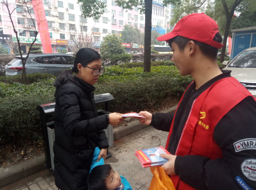 活动一共分为两组,各由一名志愿者负责人带领,负责人布置好工作任务后,各组成员们迅速投入活动开展工作。志愿者们带着真诚的笑容,给居民发放献血小册子,耐心解释、传播无偿献血精神;认真清理电线杆子、站牌上的牛皮癣;给居民送春联。