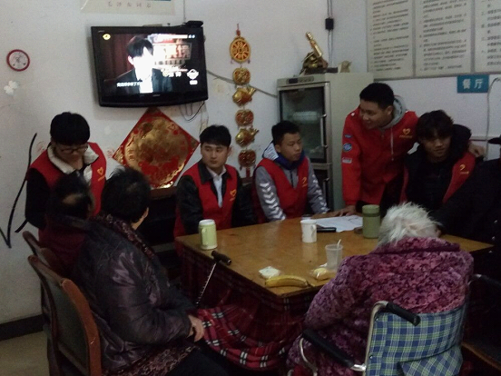 到达敬老院时,敬老院院长热心介绍院里的情况:院中有90%的老人生活不能自理,多数患有神经官能症或老年痴呆等疾病,给护理工带来极大的困难,这些老人中有几位曾是人民教师,如今,是学生去看望他们,尽显桃李芬芳一象。前去慰问的同学们起初在老人们面前显得很拘谨,但个别活跃、性格开朗外向的同学十分热情地带动了大家,那些患有老年痴呆症的老人,同学们也是很耐心的和他们交流,找尽话题讨他们开心。同时,还有为老人修理指甲、扶老人上下楼梯、背老人回房等一系列小小的举动,只为能给这些饱经风霜的心灵增添一丝温暖。听老人讲述他们老一辈人生活的酸甜苦辣、对我们的嘱咐和教诲,了解他们的期望和心声,使整个敬老院洋溢着温馨、祥和的气氛。