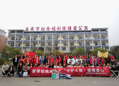 2018年3月31日上午8点,在护理学院团总支书记曾子毅老师的带领下,护理学院团总支开展“3﹑5”学雷锋系列活动之“守护天使·播撒爱心”。67名志愿者在医学院校门口集合前往娄底市社会福利院,给那里的孩子们带去我们的问候和关心。