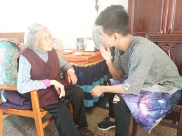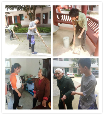 我们大致参观了一下敬老院,了解了老人们的一些生活状况,并且准备了许多水果和酸奶送给老爷爷和老奶奶们。在其中,小组一部分成员负责敬老院的打扫卫生,整理房间杂物堆放。还有一部分负责陪老人聊天,下棋等。老人们脸上洋溢着感动的笑容,为志愿者们竖起了大拇指。