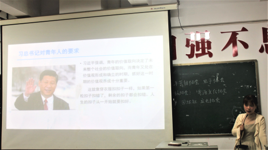 4月23日,校学工处副处长肖靓、校团委指导老师杨倩赟就深入学习“习近平新时代中国特色社会主义思想和十九大精神”分别在110教室和210教室为校团学委干部授课。