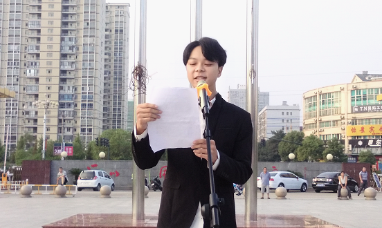 礼毕,机电工程学院邓兴同学代表全体师生在国旗下发表以《拥抱新时代,青春再起航》为主题的讲话:新学期已开始起航,从今天起我们要有一个新的开始,要勤学苦练,不断完善自我,争当一名合格、优秀的大学生。