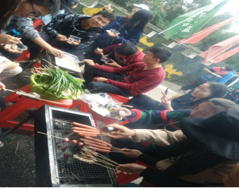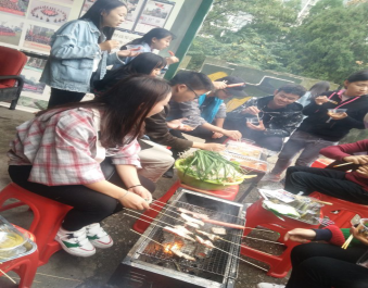在烧烤过程中,大家展示了不同的烧烤方法和技艺。欢声笑语伴随着缕缕炊烟萦绕在空气中,大家吃着自己亲手烤出的各种食品,聊着自己在学习和生活中遇到的各种趣事,其乐融融!活动一直持续到下午两点半,食物几乎被大家“洗劫一空”,整个活动气氛非常活跃!这次的烧烤活动使大家互相交流感情,在紧张的学习中能放松自己的心情。