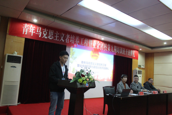开班典礼结束后,团委兼职副书记李权为学员们讲授培训第一课。从共青团的性质,共青团的历史,团旗、团徽、团员证的构成及象征意义入手带领大家更加深入地了解了共青团,感受了共青团从创立到发展壮大的伟大历程。