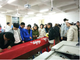 讲座还带来了一只被救助过的小狗,使得现场产生了一阵轰动,使讲座变得更加的真实。讲座结束后,社联干事及各协会成员都在横幅上签上了自己的名字,表达自己对讲座活动的支持。