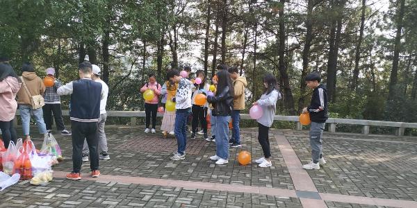 登上山顶后,首先由协会成员进行自我介绍,以方便成员间能全部认识。随后进行了吹气球的游戏,游戏过程成员都表现出了自己活泼可爱的一面,有趣的游戏不仅能丰富课余生活,更能营造和谐友好的气氛,增进人与人之间的距离。
