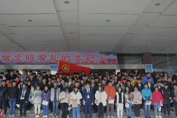 仪式进行第三项:团学委干部易珍珠宣读新入团团员名单。会议第四项,各二级学院团总支学生副书记为新团员代表授予团徽,团徽它不是一个普通的装饰品,而是我们肩负重任的标志。会议第五项,新团员全体宣誓。会议第六项新老团员代表讲话。会议第七项校团委游骏老师对新入团的同学表示祝贺,并对同学们提出三点希望:一是不断学习,努力提升自己的思想与道德素质;二是希望新团员一定要忠于自己的入团誓言,把铮铮誓言化作终身信念,化作刻苦学习的毅力和恒心;三是明确自己的责任,积极地追求上进,永争上游。