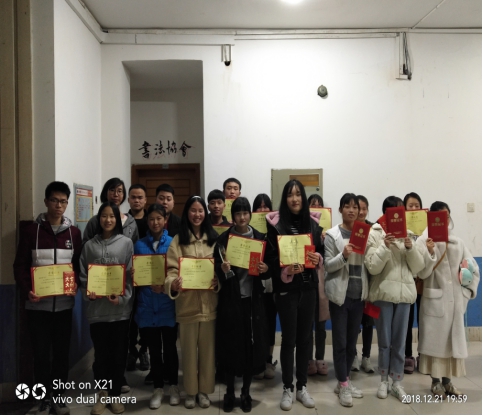 12月21日星期五,书法协会成员在主教楼514教室举行了2018年度书法协会大赛的颁奖典礼。本次比赛历时一个月,吸引了协会成员余书法爱好者踊跃参加。大赛设为硬笔组和软笔组,最终评选出23名获奖者。通过这次大赛使我们学校的广大书法爱好者挥毫泼墨书写了对书法艺术的热爱、用墨香的味道装扮我们的校园、也进一步地宣传了书法艺术。本次颁奖典礼由张敏(会长)、周侦锋(教研部部长)主持。