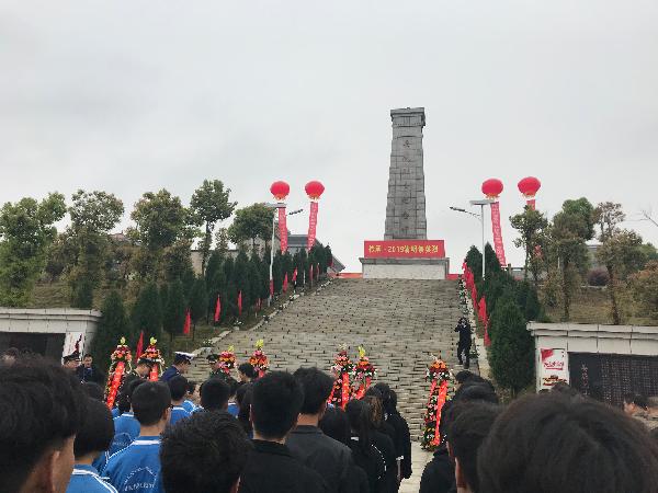 4月2日上午,为悼念革命烈士,缅怀先烈的丰功伟绩,教育学生继承革命先烈的光荣传统,弘扬民族精神,发扬先烈遗志。在团委指导老师游骏的带领下,学生干部一起前往娄底烈士纪念碑开展缅怀革命先烈、弘扬民族精神的活动。怀着沉重吊念的心情为烈士们献上鲜花,并深深弯腰鞠躬向烈士们表示沉痛的哀悼。虽感叹万分,但此时却无声胜有声。献花、默哀,我们用最传统的方式向为革命而牺牲的烈士表达无限崇高敬意和哀思。