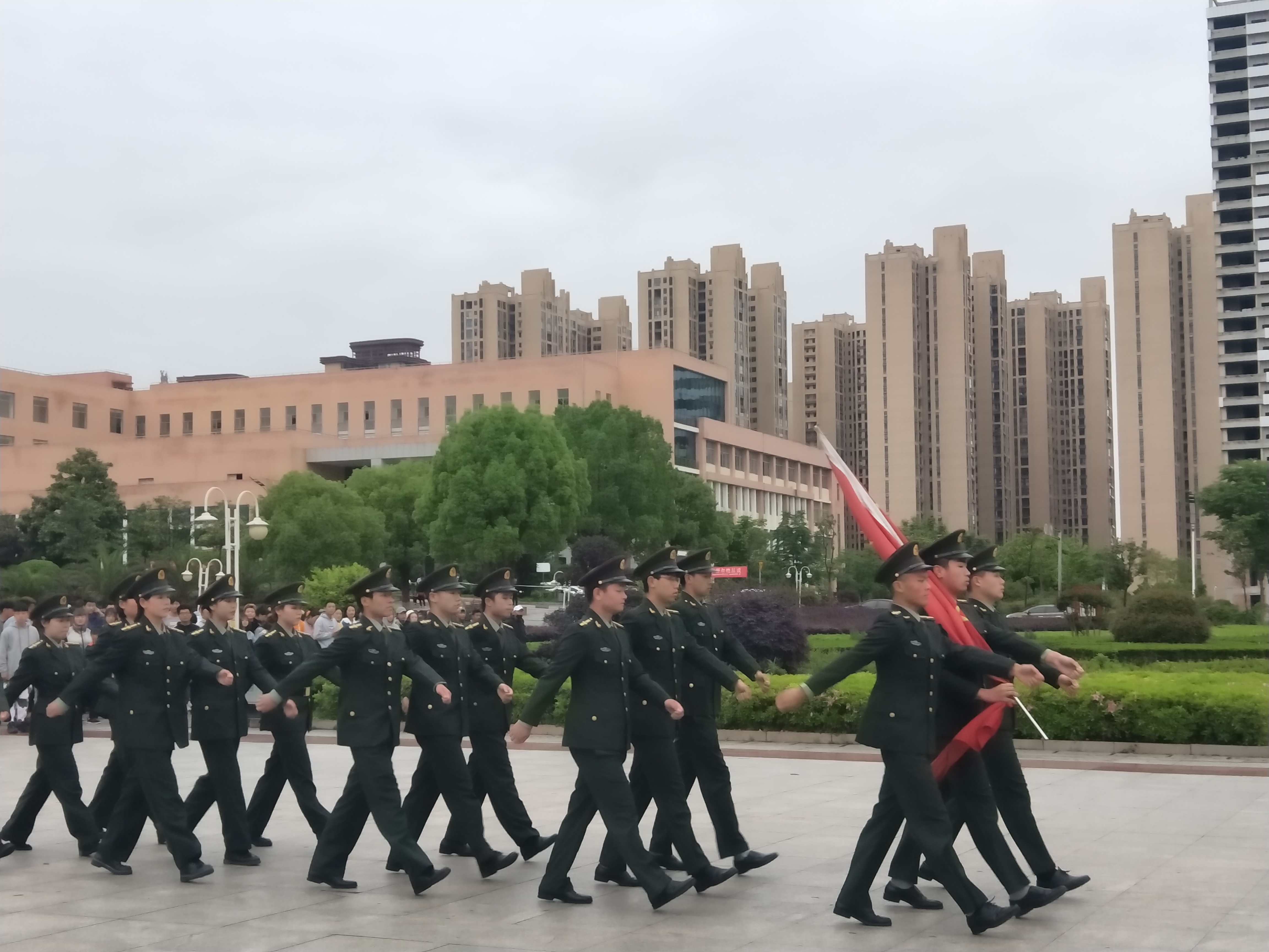 活动第一项为升旗仪式,国旗班队员护送国旗来到升旗台,随着庄严的国歌声响起,五星红旗徐徐升起,全体师生面向国旗,庄重而严肃地行注目礼。