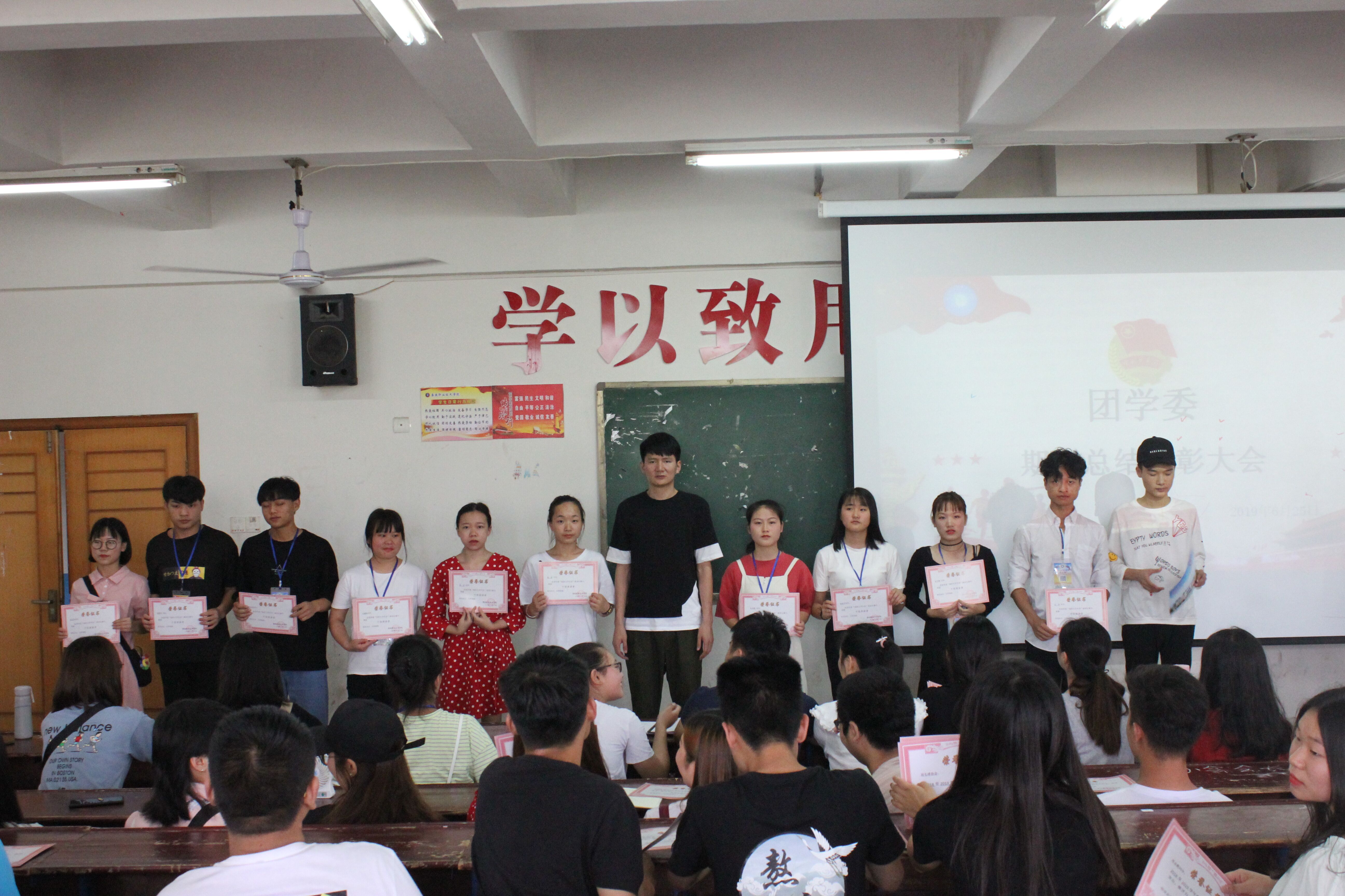 时光飞逝,又一个学期即将画上圆满的句号。为推动我校团学委工作更长久的发展,提高团学委干部工作的热情和质量,2019年6月25日,娄底职业技术学院团学委期末总结暨表彰大会在主教楼310正式举行,出席此次会议的有校团委指导老师游骏,17、18级全体团学委干部及各二级学院团副、各协会会长代表。会议由团委学生副书记周汉同学主持。