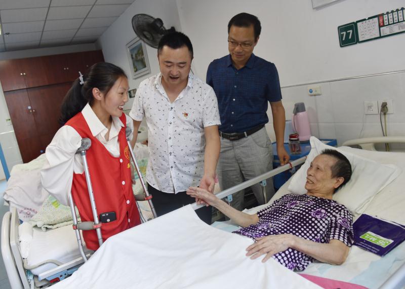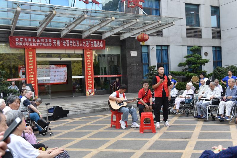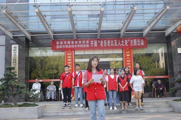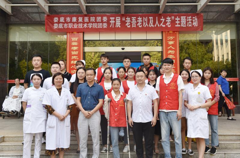 为弘扬尊老、敬老、爱老、助老的中华传统美德,庆祝中国成立70周年华诞,迎接中华传统节日重阳节到来,2019月9月30日,娄底职业技术学院校团委指导老师游骏、韩力等14名志愿者到娄底市康复医院看望正在住院和疗养的老人们。志愿者们为老人们送去了补品、牛奶、水果等,同时也送上了亲切的问候和祝福,让老人充分感受来自社会的关怀。